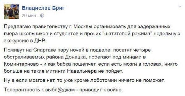 Судя по твоей реакции в этом посте , ты из команды Начального дерьма, которые затащили тупую молодёжь на этот несанкционированный митинг.