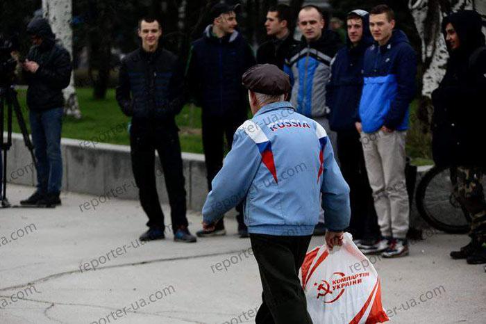 В местных СМИ эти фото появились с заголовком «В Запорожье во время празднования Дня Нацгвардии был замечен провокатор с коммунистической символикой», в с...