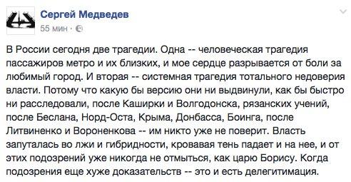 Вчера около 14.40 в вагоне поезда на перегоне станций метро «Технологический институт» и «Сенная площадь» в Санкт-Петербурге произошел взрыв неустановленного взрывного устройства.