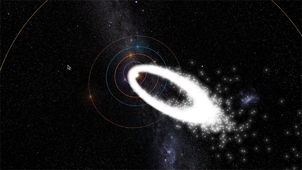 В меню View можете выбрать, с ошмётками какой кометы и когда хотите встретиться.