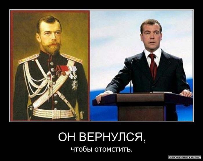 Был у Медведева и такой дальний предшественник, как Петр III, любивший позабавиться в Гатчине игрой в великого полководца Фридриха II. Сменившая его на престоле Екатерина II и без того была женщиной умной, поэтому сажать Петра III на кол не было необходимости - прибили помазанника божьего табакеркой. А эффект все равно был. Современники рассказывают: «Екатерина очень редко выезжала зимой. Однажды, почувствовав сильную головную боль, которой Она очень часто страдала, приказала подать сани, и после прогулки почувствовала облегчение. Но на другой день головная боль усилилась еще более. Зная, что накануне прогулка сделала облегчение Императрице, придворные посоветовали Ей употребить опять то же средство; но Екатерина не согласилась на это предложение, сказав: «Что подумает обо мне народ, увидевши, что Я сряду два дня прогуливаюсь по улицам!»».