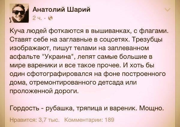 Ну почему же. Не только это. Есть еще гарны шаровары, в которые можно накладывать от лютой ненависти к Росии, и вытряхивать в Днепр раз в неделю.