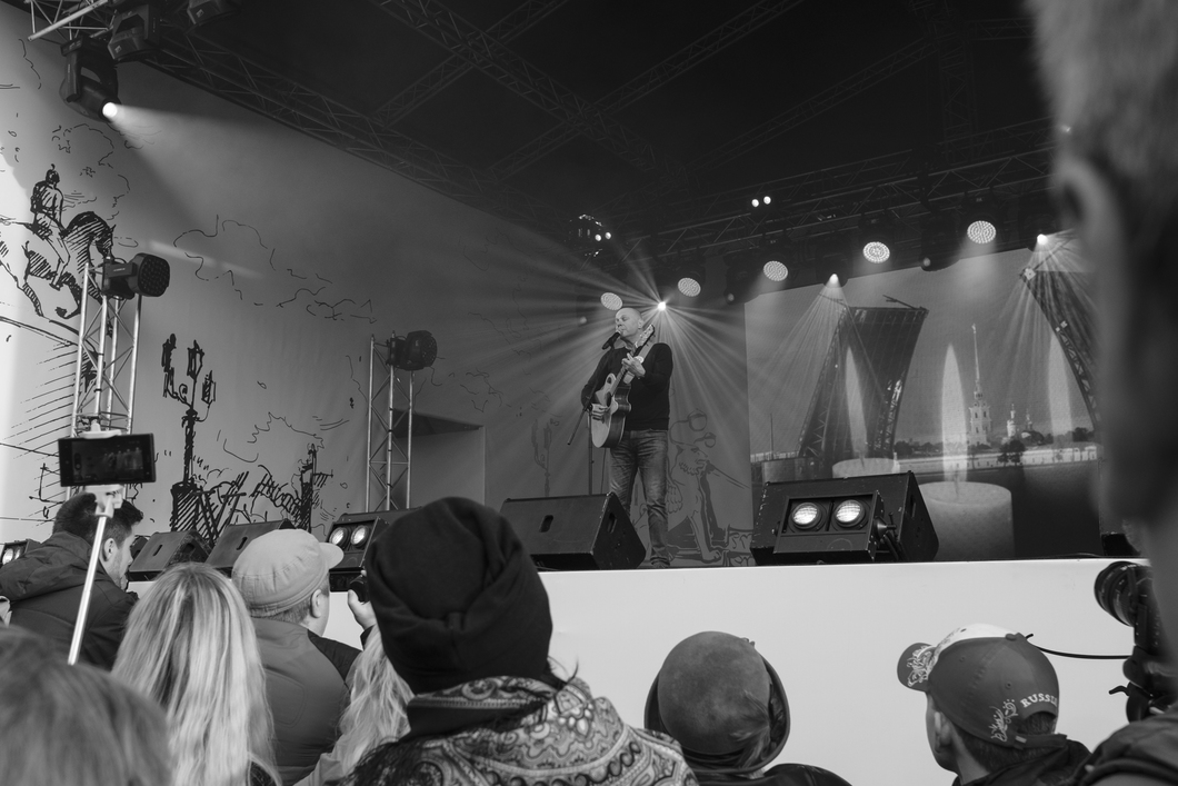 На сцене выступают Валерия, Диана Гурцкая, Алексей Кортнев, слова поддержки петербуржцам скажет режиссер Алексей Учитель. Зейналова не раз повторит, что здесь собрались люди разных политических взглядов.