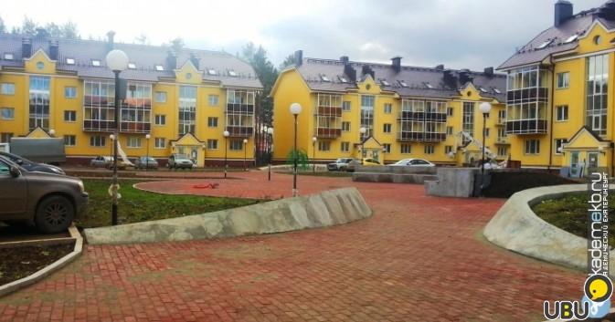 У меня напротив балкона расположились 3 скамейки , качели и песочница.