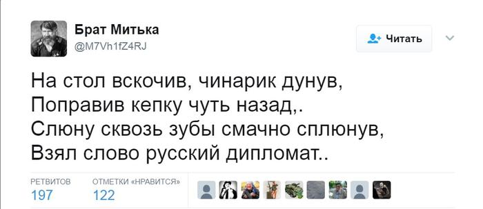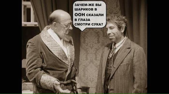 - Что тут можно сказать? В башке фарша нет, а сала не добавишь. Насрал в штаны, а говорит "ржавчина". Как любит говорить наш шеф Сергей Лавров: уникальный был старик, на х@ю носил парик.