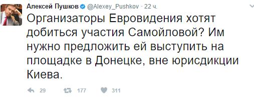 Должно быть: "Россия сама себя С УДОВОЛЬСТВИЕМ изолировала от Евровидения-2017".