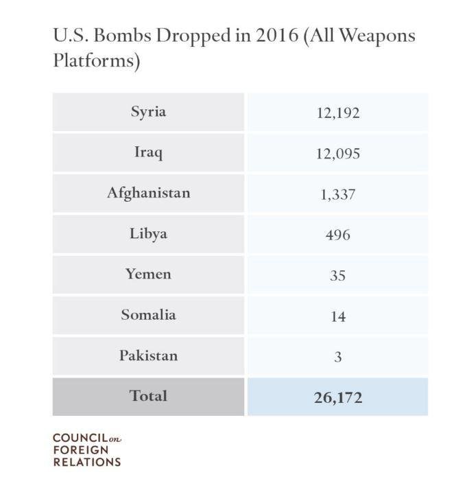 1. Китай (1945-1946) 2. Корею (1950-1953) 3. Китай (1950-1953) 4. Гватемалу (1954) 5. Индонезию (1958) 6. Кубу (1959-1960) 7. Гватемалу (1960) 8. Конго (1964) 9. Перу (1965) 10. Лаос (1964)11. Вьетнам (1961-1973)12. Камбоджу (1969-1970) 13. Гватемалу (1967-1969) 14) Гранаду (1983) 15. Ливан (1984) 16. Ливию (1986) 17. Сальвадор (1980) 18. Никарагуа (1980s) 19. Панаму (1989) 20. Ирак (1991-1999) 21. Судан (1998) 22. Афганистан (1998) 23. Югославию (1999) 24. Афганистан (2001) 25. Ирак (2003) 26. Ливию (2011) 27 Ливия 2013г ; Сирия (2014)….