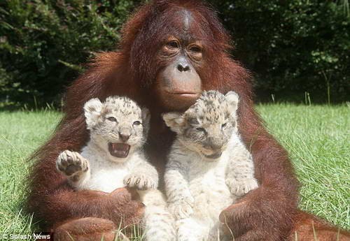 "Орангутаны, возможно, реже болеют респираторными заболеваниями, поскольку они лучше умеют оставаться сухими во время дождя и тем самым избегать потери тепла. Они любят покрывать головы во время крупными листьями или ветвями с воронкообразными мутовками листьев на концах. Когда же они в ГНЕЗДЕ, то могут построить настоящую водонепроницаемую крышу. Выходя затем из-под нее, они совершенно сухи. Напротив, гориллы и шимпанзе просто терпят дождь и сидят под ним, дрожа и выглядя несчастными и, вероятно, простужаясь в ходе этого…"