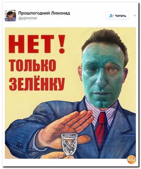 Что касается нападавших на Навального, то я встал бы на защиту их от преследований, и мало того я поддерживаю хоть морально их. Мало плескать зеленкой. Если не понимает то .