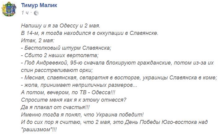 "То, что мы видим сегодня, – это попытки переписать нашу историю. С одной стороны уважаемых ветеранов ВОВ унижает власть, с другой стороны радикалы, под покровительством власти, пытаются унизить заслуги ветеранов ВОВ перед нашей страной. Но наши ветераны, как и в годы Великой Отечественной Войны, не испугались и мы вместе с жителями Славянска, защитили право на проведение праздничных мероприятий в честь Дня Победы", – заявила Наталия Королевская.