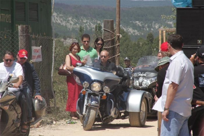 По сообщению СМИ, Владимир Путин прибыл на слет байкеров на трехколесном Harley Davidson модификации “Леман” с автоматической коробкой передач. Он был в черной рубашке, черных джинсах, черной бейсболке, темных очках и в черных перчатках.