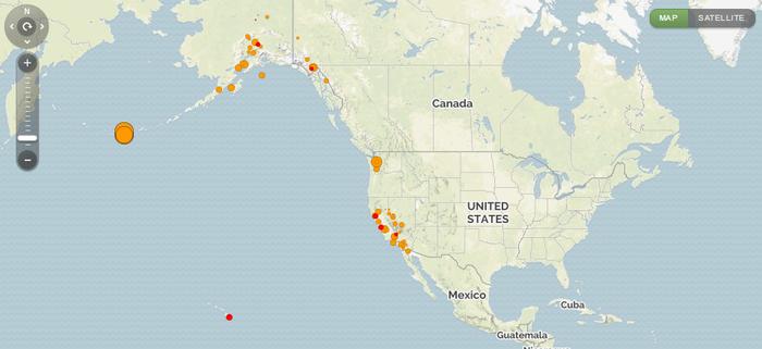 Взгляните на карту землетрясений за последние 7 дней, предоставленную геологической службой США.