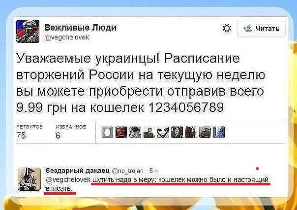 Однако вопли не стихают, и даже усиливаются по мере появления очередного разочарования Украины (например, отказе в поддержки США, МВФ, падение курса валюты, роста недовольства у населения и многих других факторов). В принципе, именно это уже о многом говорит. Киевская властная вертикаль не собирается покидать свои места в парламенте и региональной власти. Поскольку эта самая власть держится на конфронтации с Донбассом и регулярных напоминаниях о возвращении Крыма в состав Украины, то украинским политикам просто ничего не остаётся, кроме как пытаться спихнуть ответственность за любые косяки на Москву. Ну а если спихивать нечего, то они с легкостью придумают инфоповод, и раскрутят его до самых верхов Запада.