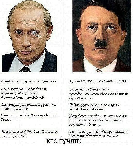 Для них Путин, всегда будет лучше Гитлера, а сам Гитлер - оценочный эталон качеств вождя!
