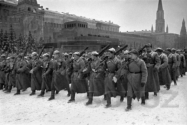 За 6 месяцев до Парада 7 ноября 1941 русские шли по Красной площади с автоматами.