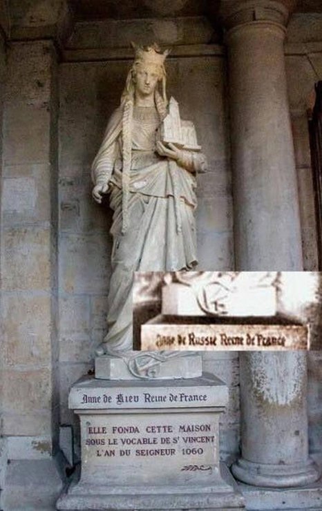 Изначально, надпись на памятнике Анне Ярославне во французском городке Санлис была такой: «Anna de Russie reine de France» (Анна Русская королева Франции). Но усилиями украинского посольства уже незалэжной Украины «ошибка» была исправлена. И теперь Анна Ярославна числится киевлянкой. Со всеми вытекающими для кастрюлеголовых последствиями…