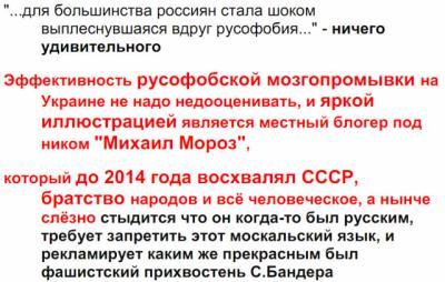 Поэтому для многих жителей России и стала шоком та ненависть к их стране, к ним самим, которую вначале источал евромайдан, а потом и члены многочисленных неонацистских карательных батальонов, на полном серьёзе убивавшие тех, кто хотел дружить с Россией. Убивавшие садистски, с фантазией и вдохновением, источая при этом животную ненависть.