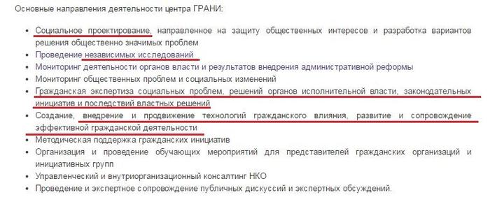 Вот что говорится о направлениях работы на самом сайте «Граней»: