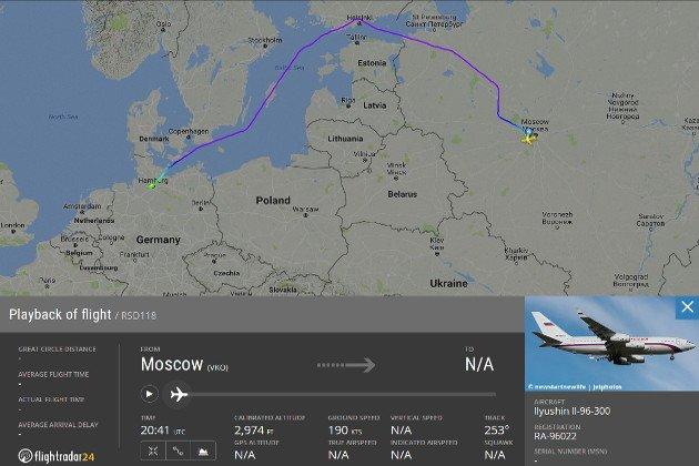 Трек полёта Путина на встречу со мной. Боится, собака, через Польшу лететь...