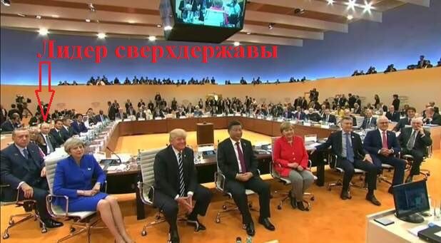 А вот так его изобразили в фотошопе ваши пропагандоны, даже название таблички поменяли с "Объединенное королевство" на "Российская федерация" )) Но на верхнем снимке чётко видно, что между США и Турцией сидела Тереза Мэй, а Вофчик сидел на отшибе ))