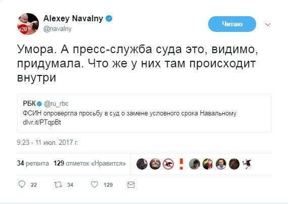 Сегодня Алексей Навальный разместил Твит про ФСИН, которая якобы подавала заявку с суд на изменение Навальному меры пресечения. Как выяснилось, никакого обращения не было, и никто не хотел дать Алексею реальный срок.
