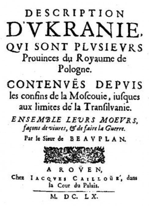 «Description d’Ukranie, qui sont plusieurs provinces du Royaume de Pologne. Contenues depuis les confins de la Moscovie, insques aux limites de la Transilvanie» - «Описание Украины, которая является некоторыми провинциями Королевства Польши. Простирается от пределов Московии, вплоть до границ Трансильвании».