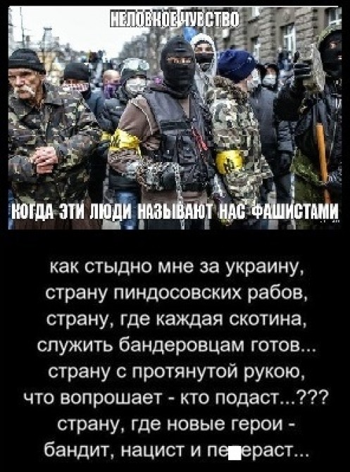 Так поступают все представители человеческой породы, старающиеся избавиться от чувства вины, не прибегая к единственному очищающему совесть методу - покаянию. Вместо последнего возникает иррациональная контрагрессия и украинофобская истерика.