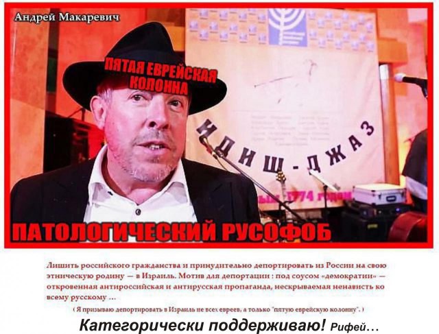 Пущай Макаревич высунет свою физиономию на улицу, так простой, русский народ нарисует на его рыле русскую любовь к нему -Склиф ему будет обеспечен.