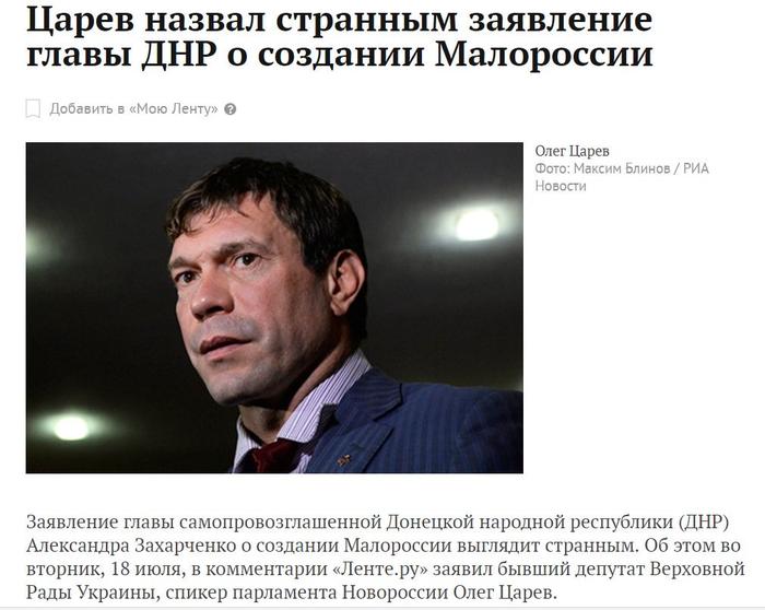 "Во вторник, 18 июля, Захарченко объявил о создании Малороссии."