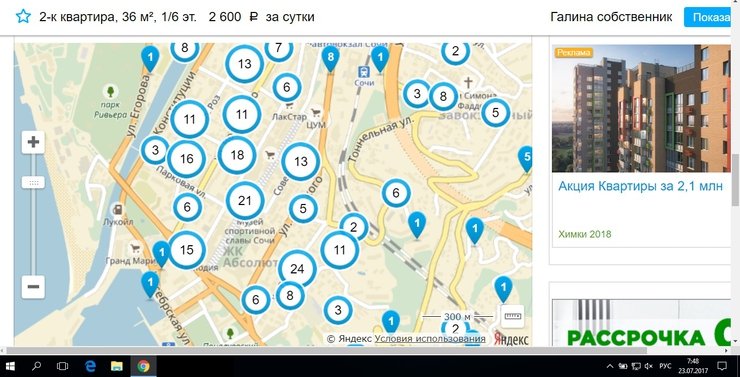Так вот, в самом центре Сочи, на улице Роз(центрее не бывает) однокомнатная квартира со всем пакетом цивилизации стоит 2000-3000 руб в сутки.