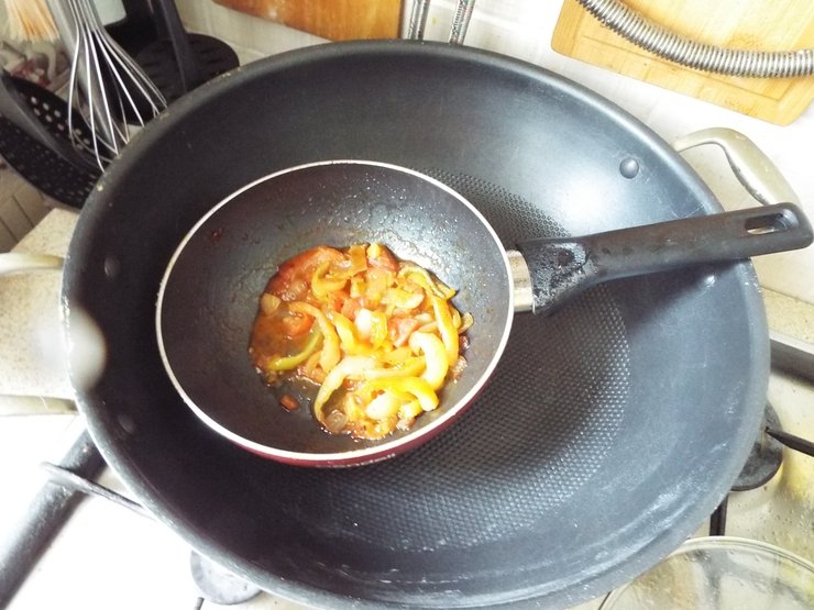 Потом купил вок, но не удачно: слишком большой для моей плиты и прогреть её почти не возможно.