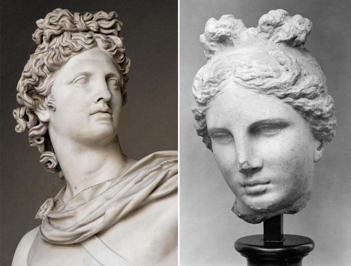 Посмотрите теперь на эти два скульптурных портрета «эпохи эллинизма». Это изображения Аполлона и Афродиты. Примечательно, что Аполлона также называли «Аполлоном Гиперборейским».