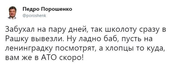 "Интересно, почему не сразу в Крым, в ДыНыРы, в Чечню?.. Любой украинец, пересекающий с любой целью границу России, становится заложником в войне – и он должен это чётко понимать. А тут 70(!) детей с родительского благословения(!) отправляют в заложники государства-агрессора! Ну, ладно, у родителей дырка в голове, ватность черепной кости и отсутствие не только мозгов, но и родительских инстинктов оберегания жизни ребёнка. Но вот куда смотрит СБУ?!