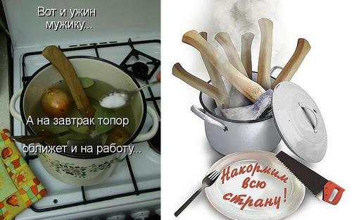 Прежде чем учить мужа суп варить, жене нужно научиться мясо на кусочки разделывать и раскладывать по пакетам, прежде чем в морозилку убрать!