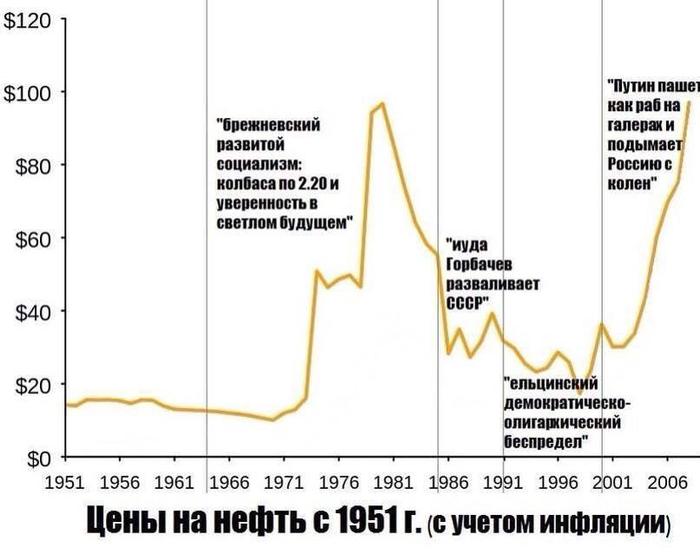 И на сладкое тебе картинка - это к тому, что все ваши мнимые экономические "успехи Путина" - просто колебания рыночной цены на нефть. Этакая "колеблющаяся" сверхдержава ))