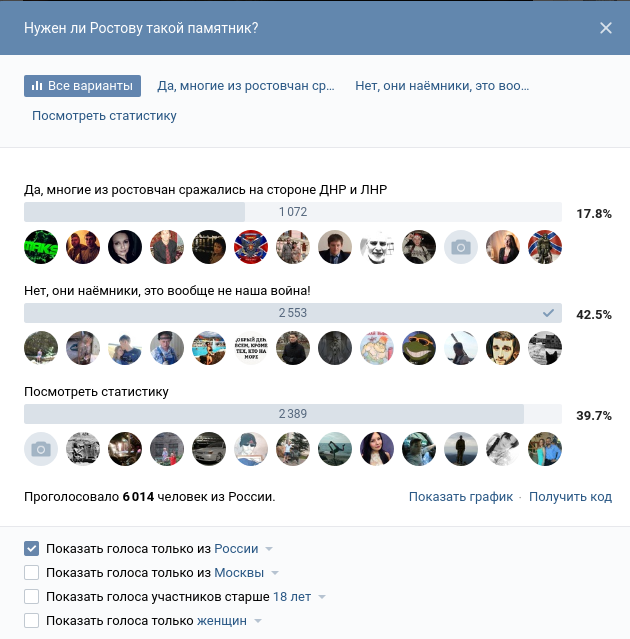 "В самом популярном городском паблике "Ростов Главный" админы разместили опрос "Нужен ли Ростову такой памятник?" И количество россиян, ответивших отрицательно, существенно превысило количество тех, кто ответил позитивно", - говорится в сообщении.