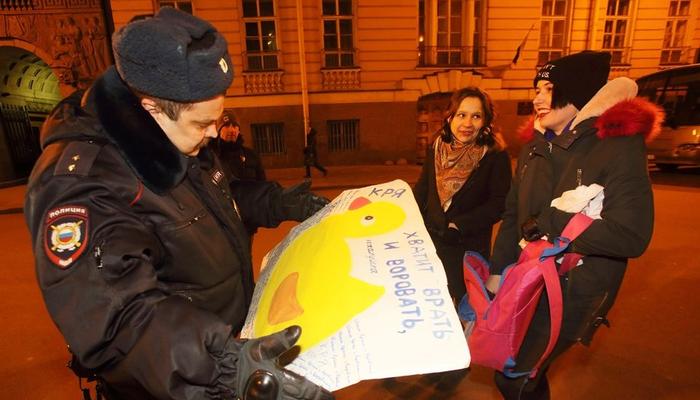 Жителя Брянска оштрафовали на 10 тысяч рублей за бутылку «Туалетного утёнка» на митинге 26 марта