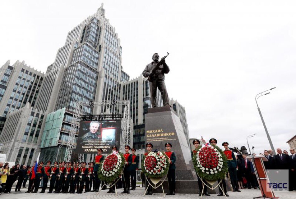 Видимо власти, поставив памятник конструктору у которого в руках АК-47 имели в виду победы российских войск, вооруженных автоматами Калашникова в двух чеченских войнах, в одной грузинской и расстреле людей в московских событиях в октябре 1993 года.