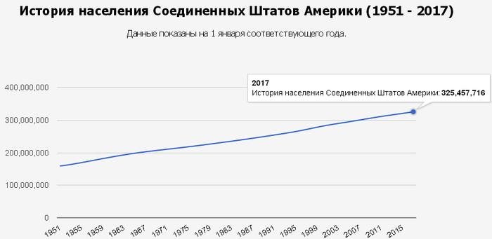 Смотрим график в 1995 году население было 265 млн + 72 млн должно сейчас получиться 337 млн, а по факту сейас в Сша 325 млн. т.е. почти совпало.