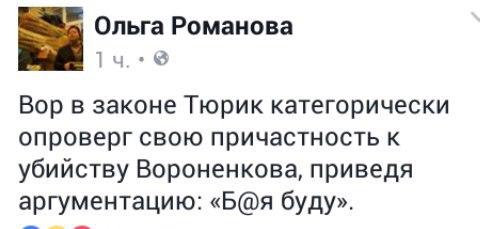 Напомним, ранее прокурор Украины Юрий Луценко объявил, что убийство в Киеве экс-депутата Госдумы Дениса Воронекова раскрыто. По его словам, спецслужбам удалось установить заказчика преступления — Владимира Тюрина. Якобы предприниматель действовал по указке российской ФСБ, опасавшейся показаний, которые мог дать беглый политик по событиям 2013-2014 годов.