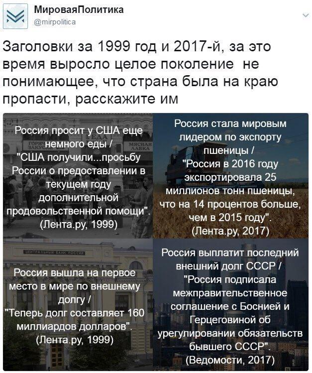 Реально нищих россиян не 20-22 млн человек, а 70-73 млн. (с доходами менее 20 тыс. рублей в месяц). Погром среднего класса, вырезание малого бизнеса, рост нищеты и бедности, люмпенизация и дебилизация населения, агрессивная пропаганда, промывка мозгов, маргинализация и деградация человеческого капитала, рост поборов и налогов, приватизация и рост платности образования, здравоохранения и прочих госуслуг идут полным ходом. Системный кризис идёт вшир...