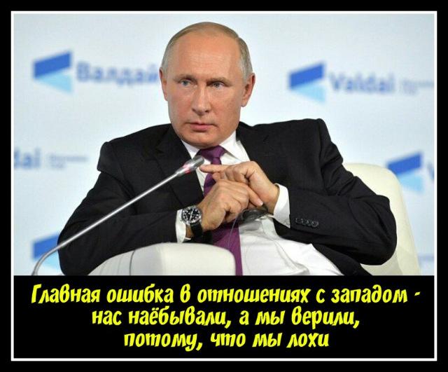 Надо ли говорить о том, что сказанное в большей степени относится именно к США, а не ЕС? Кроме того, Путин, совершенно очевидно, говорит не столько о своем политическом просчете, сколько о всех позднесоветских и первых российских политиках, да, пожалуй, о целом социальном пласте, привыкшем смотреть на Вашингтон как на икону. Если начать спорить с сомневающимися, то придется сказать и о том, что европейские страны вынуждены идти в фарватере американской политики. Более того, в европейских столицах все громче брюзжанье о том, что изоляция Москвы несет в себе немалые экономические потери и для Брюсселя. И это в разгар очередного кризиса!