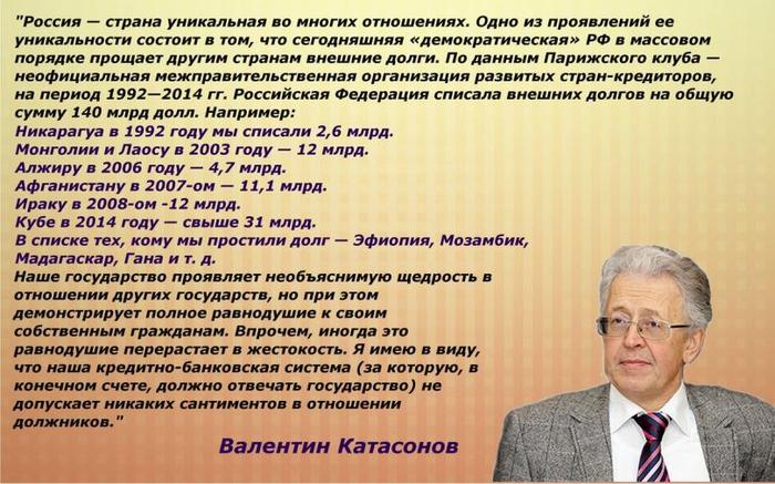 - Ваааще -то списание долгов - это только одно вредительство, тогда как вся деятельность нынешних либерастов, назначенных госдепом при захвате власти в 90-х направлена лишь на разграбление. разворовывание и ...