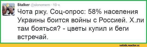 Это же уму не постижимо, сколько сейчас латентных ватников прямо сейчас разгуливает по Киеву вместо того, чтобы гордо нести свет свободы и демократии жителям Донецка и Луганска.