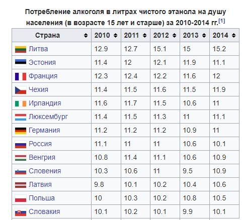 1 место в мире по потреблению спирта и спиртосодержащей продукции - Литва