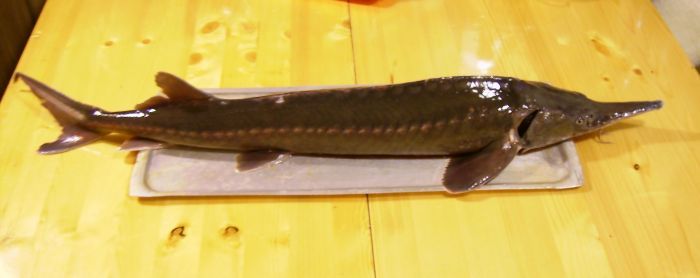 С рыбы снимают кожу, и удаляют хрящ. Затем рыбу нарезают на кусочки по 50 г., нанизывают на шампур и жарят над углями в мангале или на костре. По желанию и вкусу можно перед жареньем перемешать рыбные косточки с тертым луком, солью и перцем.