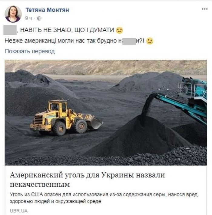 «Неужели нас так обманули»: Монтян прокомментировала закупку Украиной некачественного угля США.