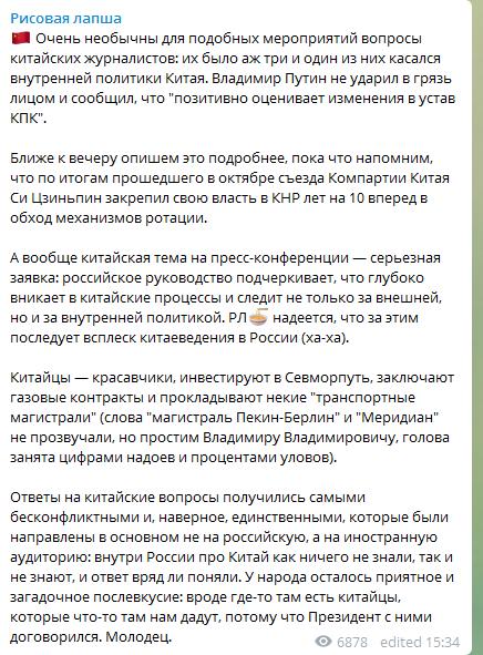Например, сколько раз можно спрашивать про Навальных. А потом столько же обсуждать, что Путин не произнес его фамилию. С Навальными его позиция понятна. Думаете, он изменит свое мнение от вопроса на конференции? Ну, давайте, еще 6 лет будем требовать отпустить Олега и допустить Алексея. По степени важности, если трезво взглянуть на ситуацию, их ситуация ну не приоритетная для таких разовых моментов. Собчак просто слилась. Ничего бесполезнее не слышала еще. Пришел журналист. Весомый как -никак, если брать громкое имя. И что сделал это журналист? Мило поулыбался, пару раз подколол и так же спокойно сел на свою Желаю очень приятного аппетита. Кстати, довольно лицемерная ситуация. Якобы вступилась за Навального, получила сравнение Навального с Саакашвили, все поржали. Куча мемов и шуток. Все, миссия закончена.