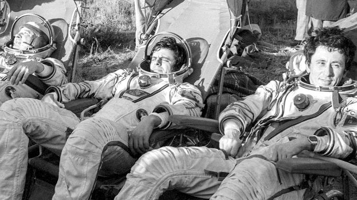 Всмотритесь повнимательнее, в каком виде возвращались из космоса советские и американские космонавты и астронавты. Советские - в черных от копоти спускаемых аппаратах, полуживые, в предынфарктном состоянии, временно неспособные ходить. У американцев все было иначе. Американские спускаемые аппараты блестели на солнце, а астронавты, находившиеся в них в более скученных условиях и пробывшие по легенде дольше, чем их еле живые советские коллеги в своих, самостоятельно вылезали наружу и бодрым, пружинистым шагом шли по палубе авианосца докладывать своему начальству, а то и президенту о благополучном завершении миссии. Веселые, улыбающиеся, полные сил и здоровья. Что и не мудрено – в космос оправлялись на самом деле ракеты без экипажей, спускаемые аппараты сбрасывались в океан с американских транспортных самолетов, чему есть свидетели. Поэтому хорошо отдохнувшим в укромном месте астронавтам не стоило никакого труда разыграть спектакль с прибытием на Землю после трудных космических подвигов. +