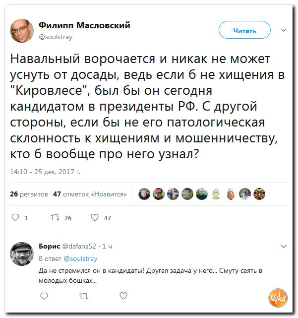 Верить в святость и в неподкупность Лёши, в «самоокупаемость его патриотизма», в его «гражданское мужество», в компетентность и деловую состоятельность как потенциального главы государства — могут только дебилы.
